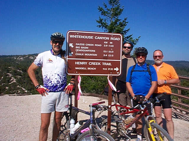 Steve Hoppe, David Griffin, Rick Oswald and Rick Burrows standing by the signpost on Whitehouse Canyon Road. This road leads up to Chalk Mountain.